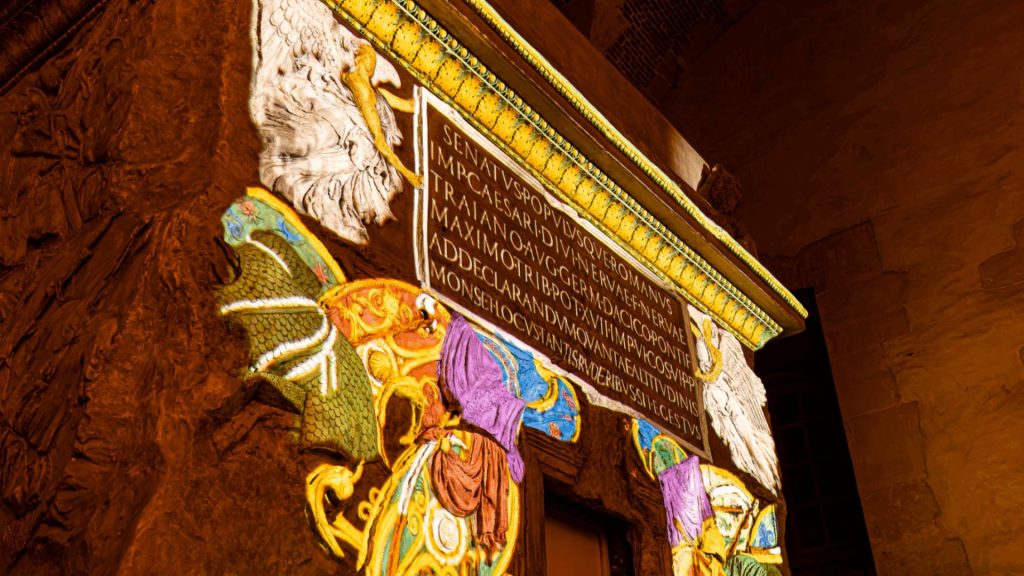 Pensé comme une véritable écriture lumineuse, le dispositif épouse avec précision l’architecture du lieu et la matérialité de la pierre. Les projections soulignent reliefs, textures et lignes sculpturales avec finesse, révélant la richesse des œuvres sans jamais les dénaturer. Chaque animation est calibrée pour respecter les volumes et accompagner le regard du visiteur.
